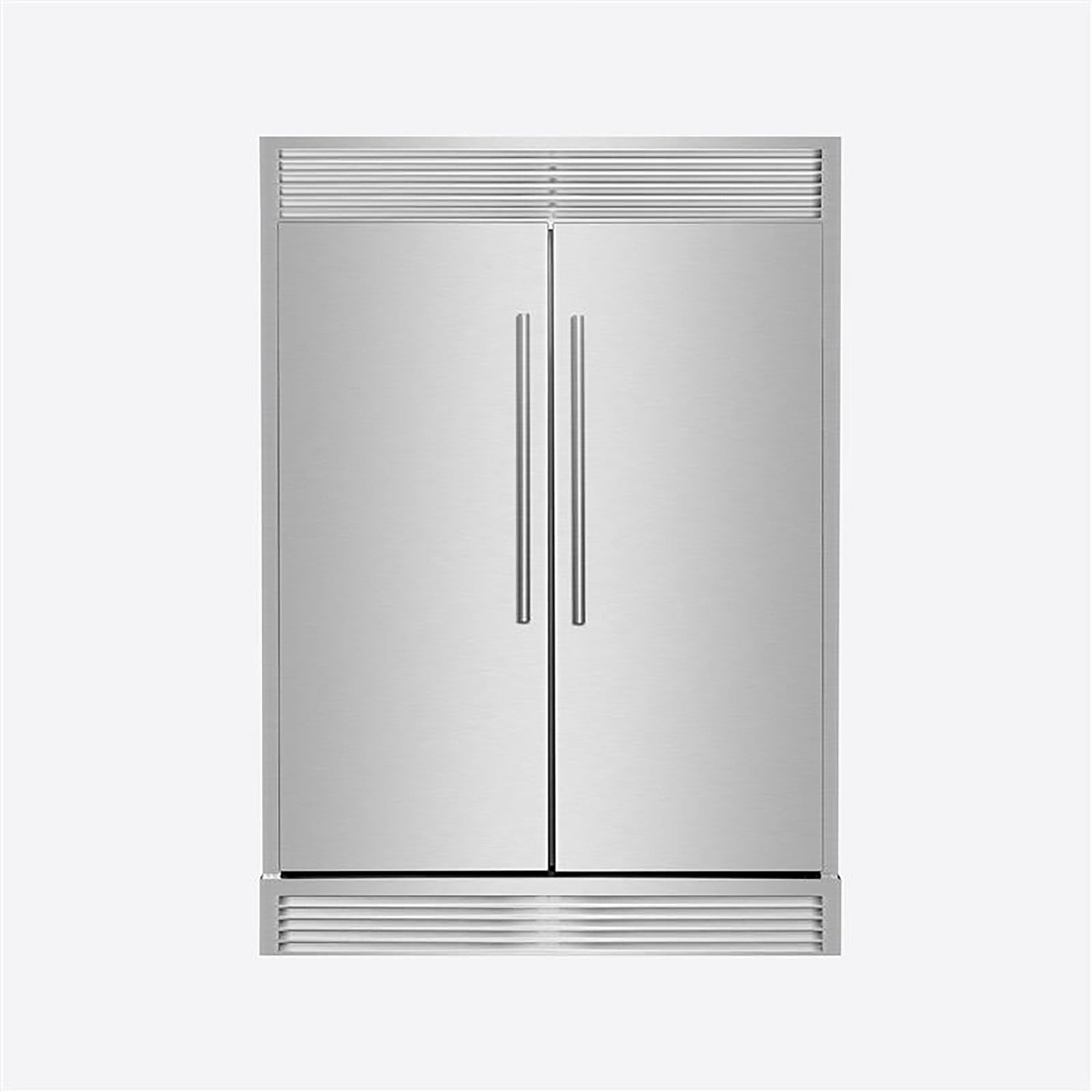 The Forno Maderno 60-inch built-in refrigerator configuration consists of two 28-inch refrigerator/freezer units combined with a decorative trim kit to create a unified built-in appearance. The configuration provides a combined total storage capacity of 27.2 cu. ft. and is designed for built-in residential kitchen installations.